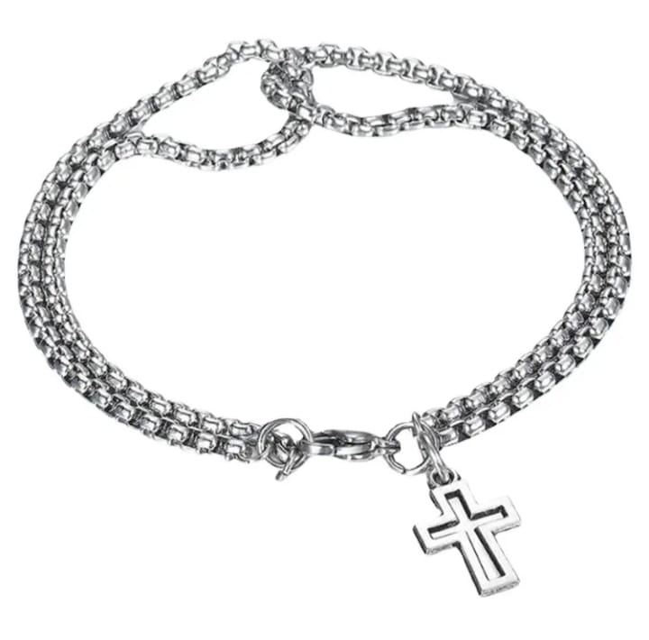 Its meticulous finishing work highlights a simple yet assertive style, while a silver cross charm adds a symbolic and contemporary touch. Robust and wear-resistant, stainless steel guarantees a durable piece of jewelry that won't tarnish over time.